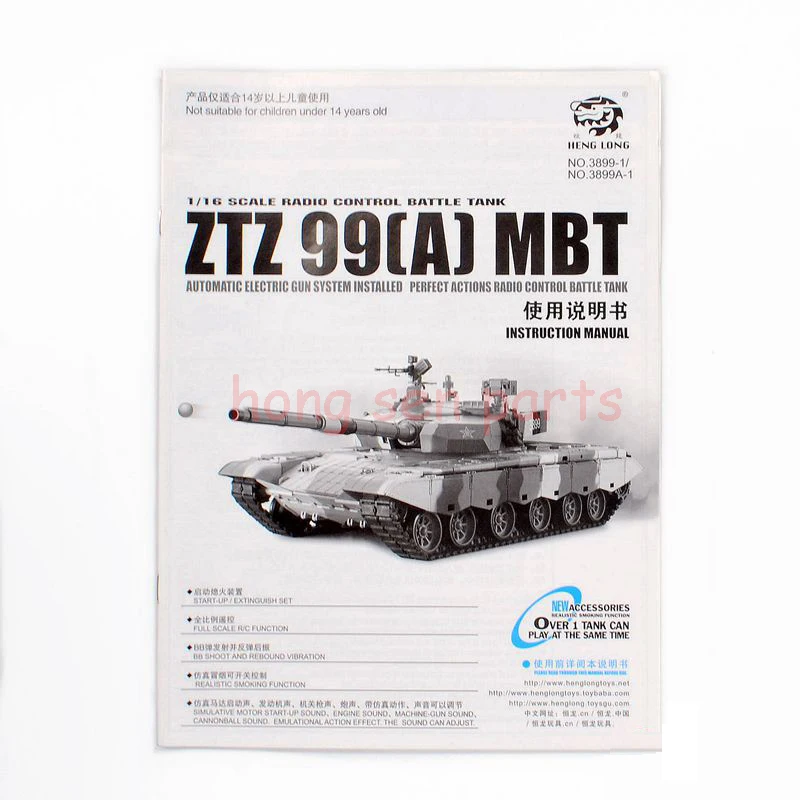 - HENG LONG 3899/3899A-1 1/16 RC tank ZTZ 99 MBT spare parts No.Manual / booklet / instruction