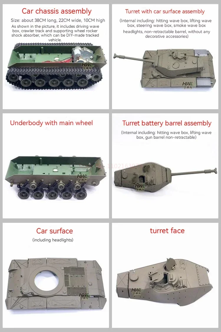 - Henglong 3839-1 Fierce Dog M41a3 Tank Accessories Plastic Chassis Car Surface Turret, Bottom Surface Telescopic Gun Barrel