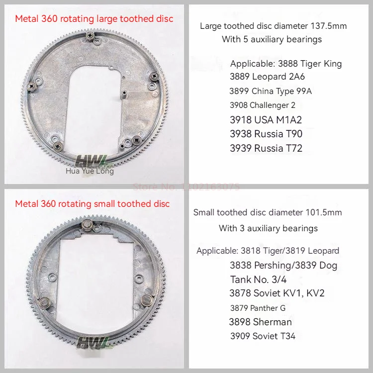 Henglong Tank Model Modification Parts Metal Telescopic Gun Barrel Rotating Turret Wave Box Turret 360 Degree Gear Kit M1A2 T90